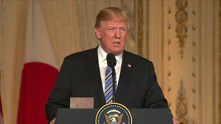 ერთობლივ პრესკონფერენციაზე, მან და იაპონიის პრემიერ მინისტრმა, შინძო აბემ, რომელიც ფლორიდაში, პრეზიდენტის მარ-ა-ლაგოს კურორტზე იმყოფება, განაცხადეს, რომ ჩრდილოეთ კორეაზე, მისი ბირთვული განიარაღების მიმართულებით, მაქსიმალური ზეწოლა უნდა შენარჩუნდეს.