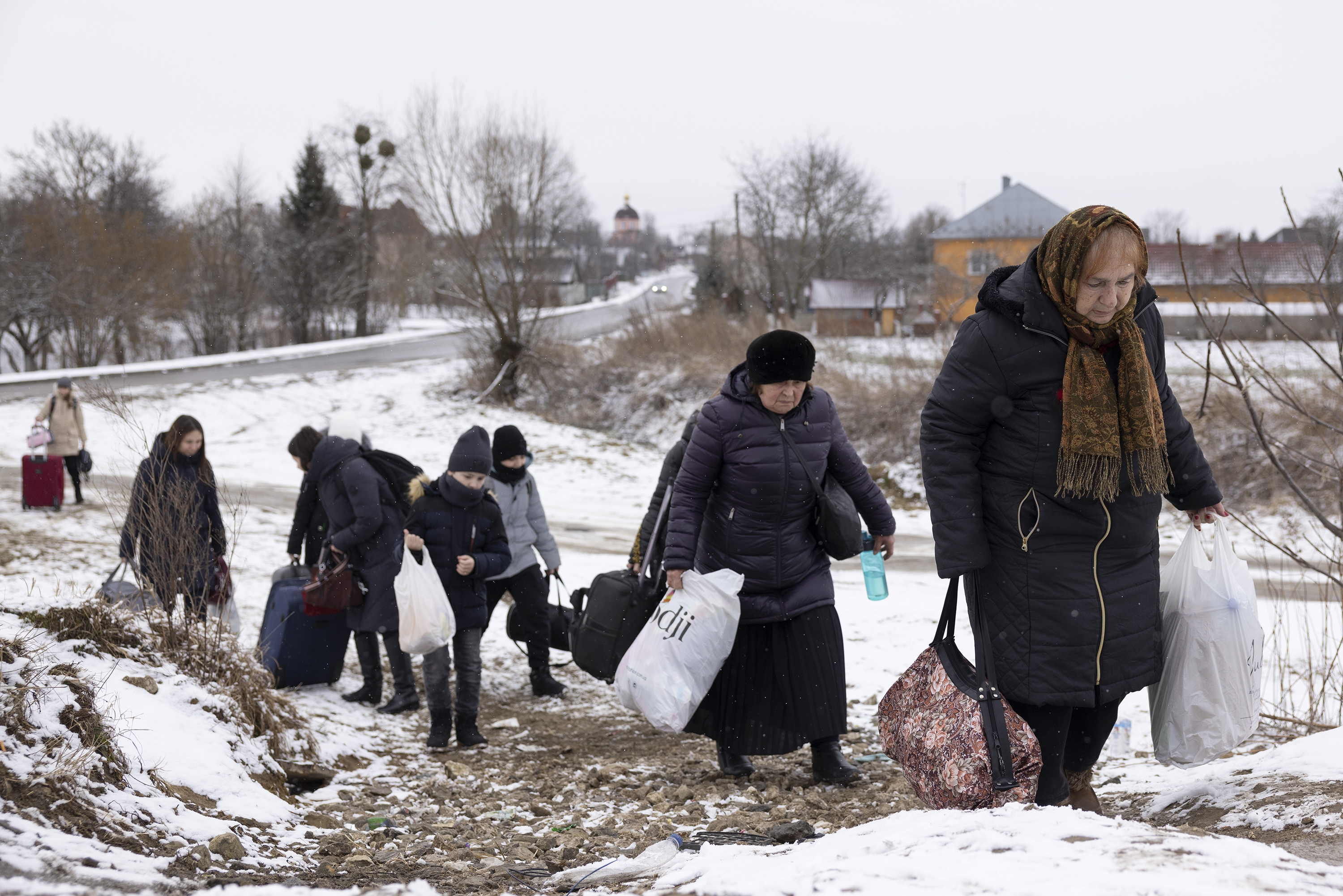 Refugees fleeing conflict make their way to the border crossing with Poland on March 9 in Krakovets, Ukraine.  (Dan Kitwood/Getty Images)