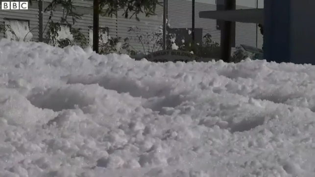 აალების შემაკავებელი ქაფის უზარმაზარმა მასამ დაფარა აეროპორტის ანგარის მიმდებარე ქუჩები ამერიკის შტატ კალიფორნიაში.
