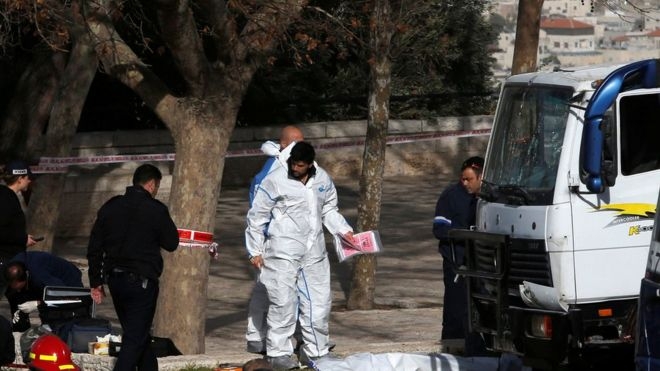 პოლიციამ იერუსალიმში ცეცხლსასროლი იარაღით მოკლა ეჭვმიტანილი ტერორისტი, რომელიც სატვირთო ავტომანქანით ფეხით მოსიარულეთა, ჯარისკაცების ჯგუფში, შევარდა, რის შედეგადაც სულ მცირე 15 ადამიანი დაშავდა. პოლიციის ცნობით, გარდაცვლილია 4 ადამიანი.