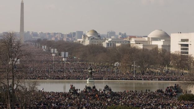 (პრეზიდენტ ბარაქ ობამას პირველ ინაუგურაციაზე, 8 წლის წინათ, ვაშინგტონში 1.8 მილიონი ადამიანი იყო გამოსული).