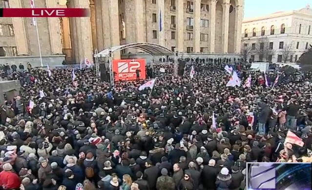 „რუსთავი 2“-მა მაუწყებლობა განაახლა. თბილისში, რუსთაველის გამზირზე, პარლამენტის შენობის წინ ტელეკომპანიის მხარდამჭერ აქციაზე შეკრებილ ათასობით ადამიანს სიტყვით არხის გენერალური დირექტორის პირველმა მოადგილემ, „კურიერის“ წამყვანმა ზაალ უდუმაშვილმა მიმართა. მან მადლობა გადაუხადა, „სიტყვის თავისუფლების და დემოკრატიის დასაცავად“ შეკრებილებს და თქვა, რომ ყადაღის და მუდმივი წნეხის მიუხედავად „რუსთავი 2“ განაგრძობს მაუწყებლობას.