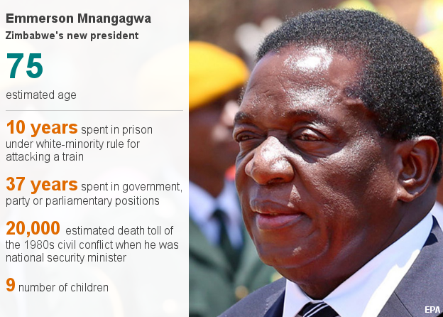 ზიმბაბვეს ახალმა პრეზიდენტმა, ემერსონ მნანგაგვამ, რომელიც სამხრეთ აფრიკიდან ოთხშაბათს დაბრუნდა სამშობლოში, რუბერტ მუგაბეს 37-წლიანი მმართველობის დასრულების შემდეგ, ქვეყნის დედაქალაქ ჰარარეში ხალხით გადაჭედილ სტადიონზე ფიცი დადო.