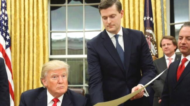 ტრამპის ოფიციალური გამოსვლების დამწერი დევიდ სორენსენი აშშ-ის პრეზიდენტის მეორე თანაშემწე გახდა ამ კვირას, რომელიც ოჯახური ძალადობის ბრალდებების გამო თანამდებობიდან გადადგა.