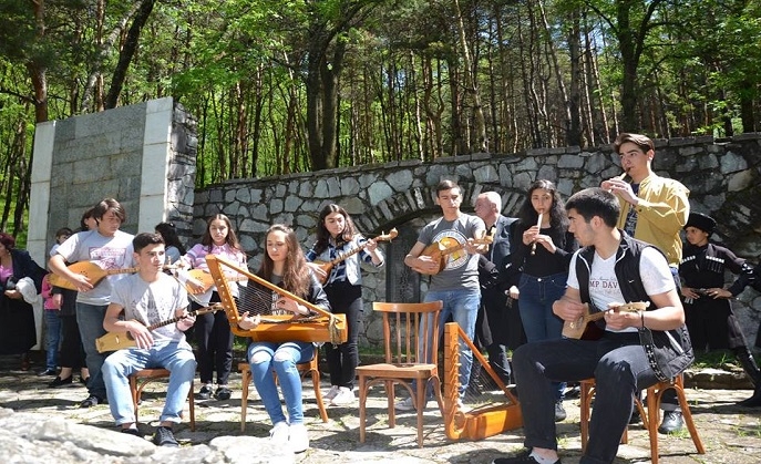 გამარჯვების 73-წლისთავისადმი მიძღვნილ ღონისძიებაზე ვეტერანებისა და დაღუპული გმირების პატივსაცემად, სახელოვნებო სკოლის მოსწვლეებმა სხვადასხვა მუსიკალური ნომრები შეასრულეს და ლექსები წაიკითხეს.