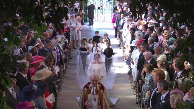 ვინძორის სასახლეში პრინც ჰარისა და მეგან მარკლის საქორწინო ცერემონია მიმდინარეობს. ცერემონია დაგეგმილზე 6 წუთის დაგვიანებით დაიწყო. სამეფო წყვილმა თავიანთი ბეჭდები გაცვალეს და თავიანთი აღთქმა დადეს. ჰარი და მეგანი დაქორწინებულები არიან.