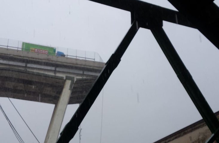 (იტალიის პოლიციის მიერ გავრცელებულ ფოტოზე ჩანს, თუ როგორ არის გაჩერებული სატვირთო ავტომანქანა ხიდის გადარჩენილი ნაწილის ბოლოში)