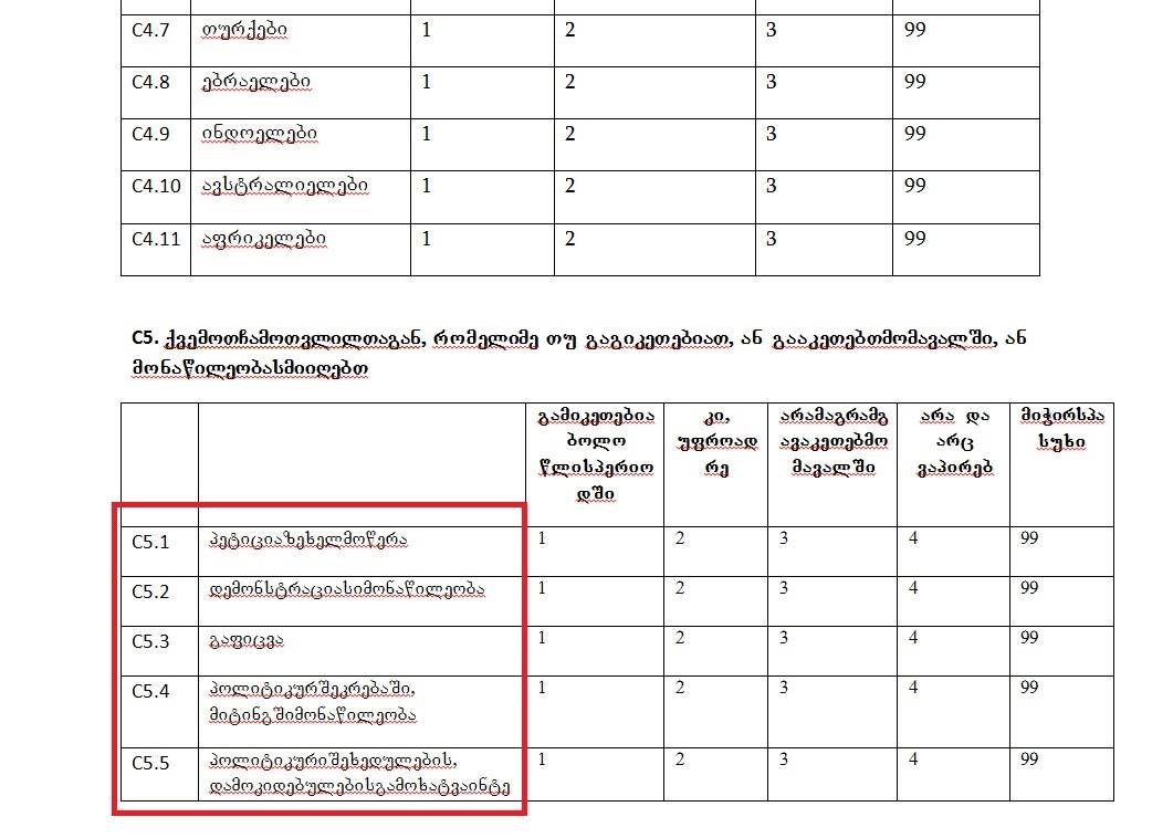 „ანკეტაში წერია - ქვემოთ ჩამოთვლილთაგან რომელიმე თუ გაგიკეთებიათ, ან გააკეთებთ მომავალში- დემონსტრაციაში მონაწილეობა, გაფიცვა, პოლიტიკურ შეკრებებში, მიტინგებში მონაწილეობა, პოლიტიკური შეხედულების, დამოკიდებულების გამოხატვა ინტერნეტში. და ამას ეკითხებიან 14-დან 18 წლამდე არასრულწლოვანებს, რაც არის კანონდარღვევა და პირდაპირ გვაგონებს გერმანიის „ჰიტლერიუნგენდის“ - ნაცისტური პარტიის ახალგაზრდული ორგანიზაციის იდეოლოგიას“, - მიაჩნია „პოზიციის“ აღმასრულებელ დირექტორს, რომელიც შეშფოთებას გამოხატავს მიმდინარე პროცესების გააქტიურებით და პროექტში ჩართულ მოზარდებს და მშობლებს მოუწოდებს თავი შეიკავონ „ნაციონალური მოძრაობის“ წარმომადგენლების მსგავსი შემოთავაზებებისაგან.