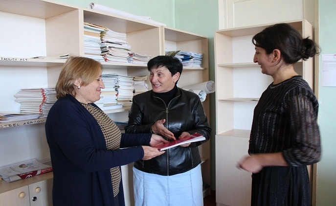 (GUARDIAN.GE-ის ფოტო: მარცხნივ, კიზილქილისის საჯარო სკოლის სასწავლო ნაწილის გამგე მანუშაკ ქუჩუკიანი; შუაში, ქართულის, როგორც მეორე ენის პედაგოგი, ციცინო კანციანი; მარჯვნივ, სკოლის დირექტორი აზნივ ვოსკანიანი)