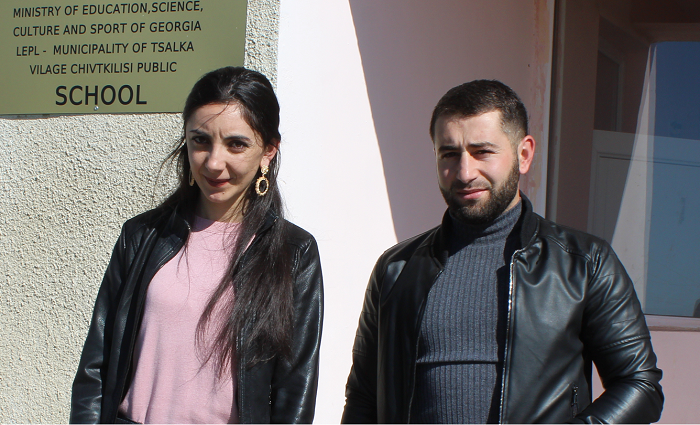 (GUARDIAN.GE-ის ფოტოზე წალკის მუნიციპალიტეტის სოფელ ჩივთქილისის საჯარო სკოლის დირექტორი ვართუი სარკსიანი და გიორგი ვოსკანიანი)