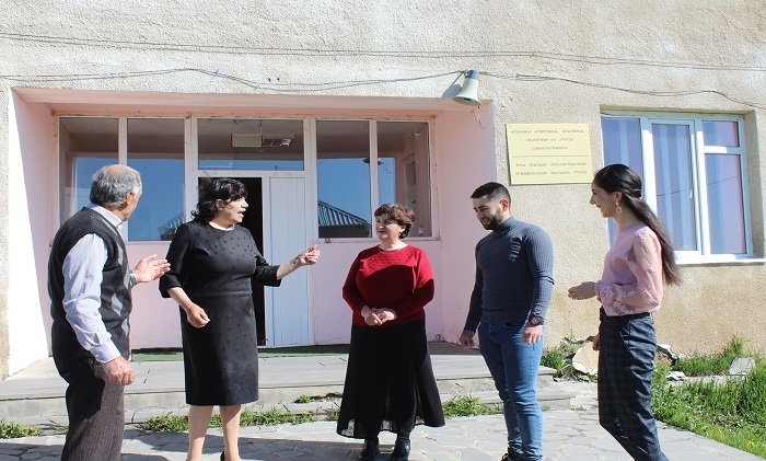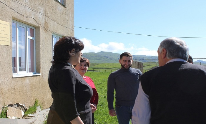 (GUARDIAN.GE-ის ფოტოზე წალკის მუნიციპალიტეტის სოფელ ჩივთქილისის საჯარო სკოლის დირექტორი ვართუი სარკსიანი პედაგოგებთან)