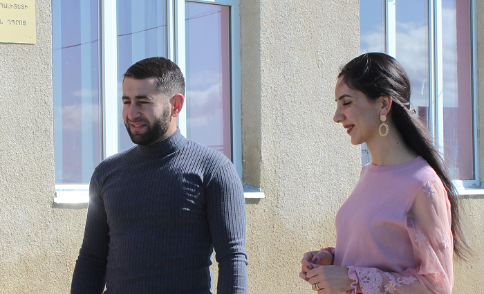 (GUARDIAN.GE-ის ფოტოზე დაბლა: გიორგი ვოსკანიანი თავის მეუღლესთან, მარიამ ფიდოიანთან ერთად - გიორგიმ მომავალი მეუღლე, მარიამ ფიდოიანი, რომელიც ჩივთქილისის ახლომდებარე სოფელ აშკალადანაა, თბილისში, უნივერსიტეტში სწავლის პერიოდში გაიცნო და ახლა ისინი ერთ სკოლაში ასწავლიან. მარიამმა ჩივთქილისის საჯარო სკოლაში დაწყებითი კლასების ქართული ენისა და მათემატიკის მასწავლებლად მუშაობა 2019 წელს დაიწყო და იგი ჯერჯერობით უსტატუსო პედაგოგია).
