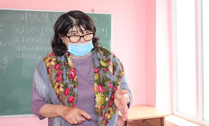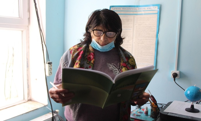(GUARDIAN.GE-ის ფოტოზე: შაქრო ხაჩატურიან, წალკის მუნიციპალიტეტის სოფელ ჩივთქილისის საჯარო სკოლის გეოგრაფიის მასწავლებელი გაკვეთილის ჩატარების პროცესში)