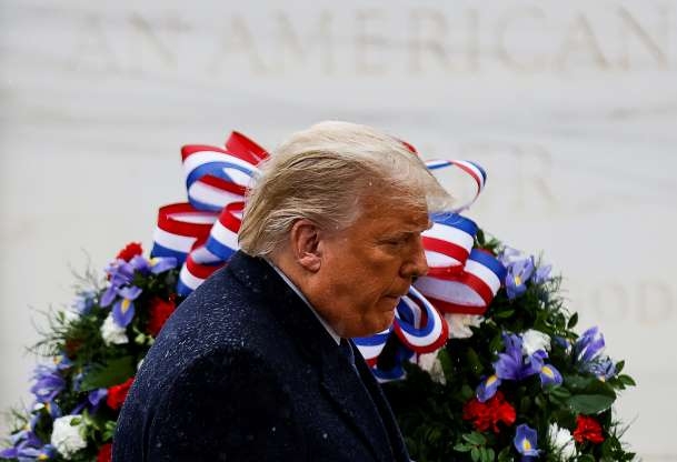 Donald Trump has emerged in public for the first time since losing the US election as he visited the Tomb of the Unknown Soldier at Arlington National Cemetery.