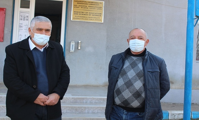 (GUARDIAN.GE-ის ფოტოზე მარცხნიდან მარჯვნივ: სიპ მარნეულის მუნიციპალიტეტის სოფელ ულაშლოს საჯარო სკოლის დირექტორი ახმედ გაჯიევი და მათემატიკის მასწავლებელი ელშად აბდალოვი)