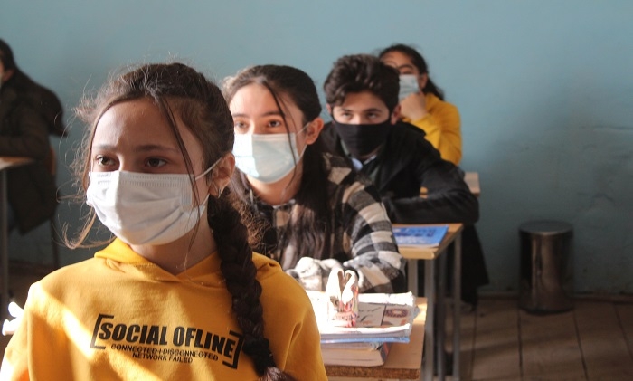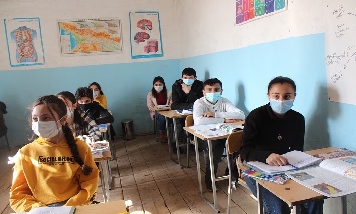 (GUARDIAN.GE-ის ფოტოზე: სსიპ მარნეულის მუნიციპალიტეტის სოფელ ულაშლოს საჯარო სკოლაში ქართულის როგორც მეორე ენის გაკვეთილზე მოსწავლეები)