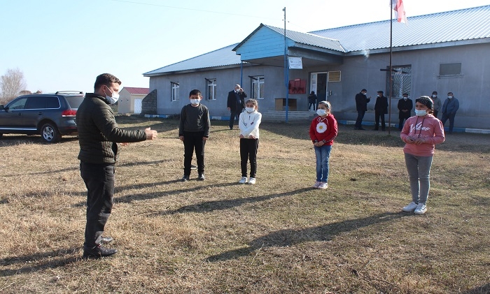 (GUARDIAN.GE-ის ფოტოზე: სსიპ მარნეულის მუნიციპალიტეტის სოფელ ულაშლოს საჯარო სკოლის ქართულის როგორც მეორე ენის უფროსი კონსულტანტ-მასწავლებელი ბექა თოხშუა მოსწავლეებთან)