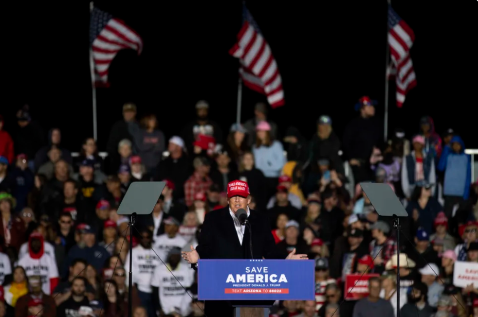 Former President Donald Trump speaks at a rally in Florence, Ariz., Jan. 15, 2022. (Adriana Zehbrauskas for The New York Times
