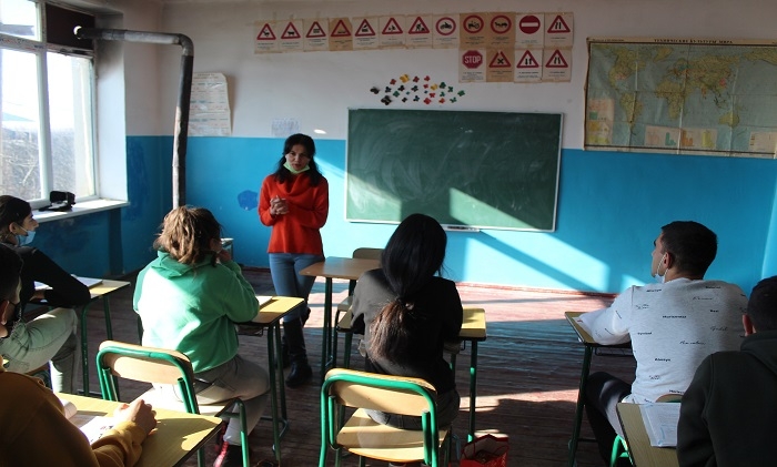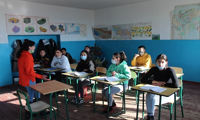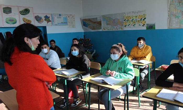 GUARDIAN.GE-ის ფოტოებზე დაბლა: წალკის მუნიციპალიტეტის სოფელ აშკალის საჯარო სკოლის მე-11 კლასში გაკვეთილის მიმდინარეობა: თეა გიგიტაშვილი - ქართულის, როგორც მეორე ენის მასწავლებელი