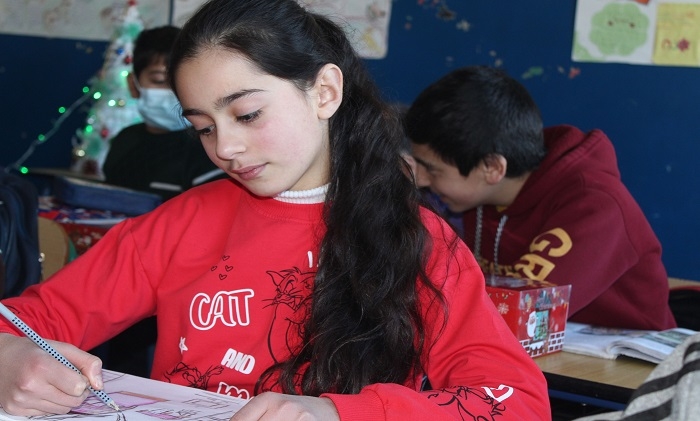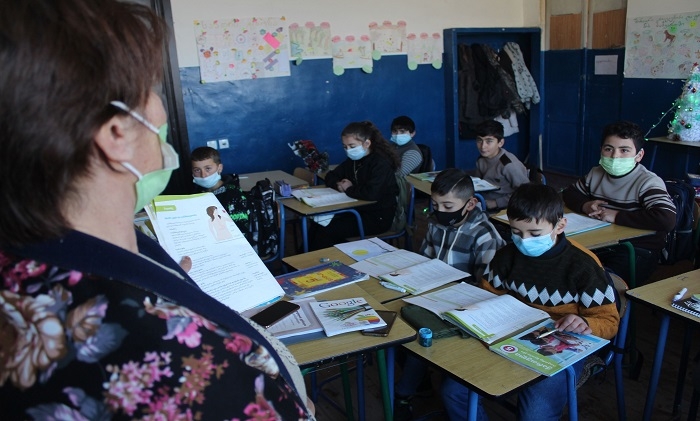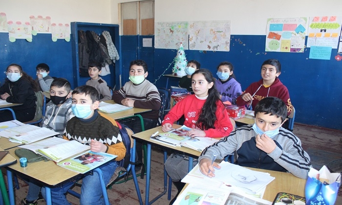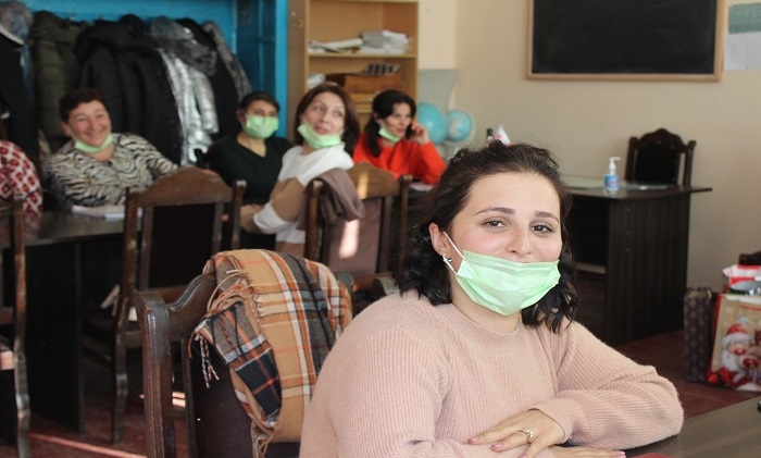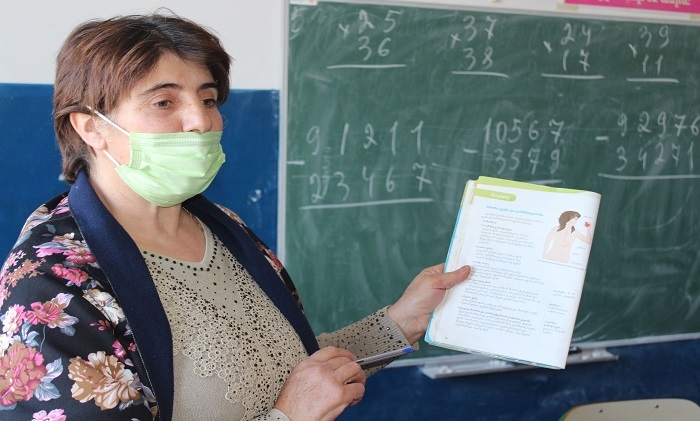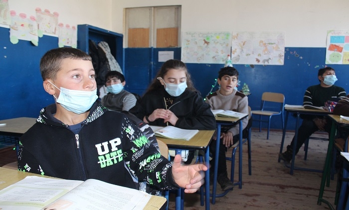 GUARDIAN.GE-ის ფოტოებზე დაბლა: წალკის მუნიციპალიტეტის სოფელ აშკალის საჯარო სკოლის მე-5 კლასში გაკვეთილის მიმდინარეობა: გოჰარ ჟამკოციან - ხელოვნების მასწავლებელი და ლუსინე ტერბალიან - ქართულის, როგორც მეორე ენის მასწავლებელი