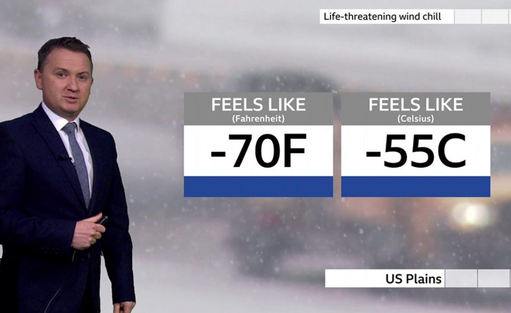 The National Weather Service (NWS) said temperatures of -50F (-45C) and -70F were possible by the end of this week in some parts of the country.
