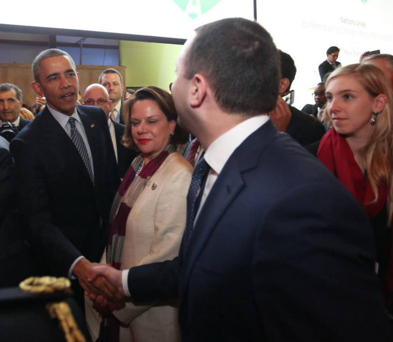 საქართველოს პრემიერ-მინისტრი ირაკლი ღარიბაშვილი პარიზში, გაერო-ს კლიმატის ცვლილებების ჩარჩო კონვენციის მხარეთა კონფერენციის გახსნამდე, მცირე ხნით მსოფლიოს სხვადასხვა ქვეყნის ლიდერებს, მათ შორის ბარაქ ობამას შეხვდა.