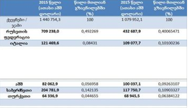 რაც შეეხება რუსეთს, უახლესი მონაცენების თანახმად ფულადმა გზავნილებმა რუსეთიდან 2015 წელს, წინა წელთან შედარებით 276 მილიონი აშშ დოლარით იკლო (39%-ით), რაც საკმაოდ სოლიდური და მნიშვნელოვანი ოდენობის თანხაა, იმასაც თუ გავითვალისწინებთ, რომ ჯამურმა მაჩვენელმა 2014 წლის 1.44 მილიარდიდან, 1.08 მილიარდამდე (25%-იანი კლება). ფაქტობრივად, გამოდის რომ ფულადი გზავნილების ნაკადის შემცირება ¾-ით მხოლოდ რუსულ ფაქტორზეა დამოკიდებული (ამ შემთხვევაში რუსული ვალუტის გაუფასურება 76 რუბლი 1 დოლართან, პირდაპირ გავლენას ახდენს საქართველოში განხორციელებულ ფულად გზავნილებზე), რაც ხაზს უსვამს რუსეთსზე საქართველოს ეკონომიკის მნიშვნელოვან დამოკიდებულებას ამ კონკრეტული მიმართულებით.