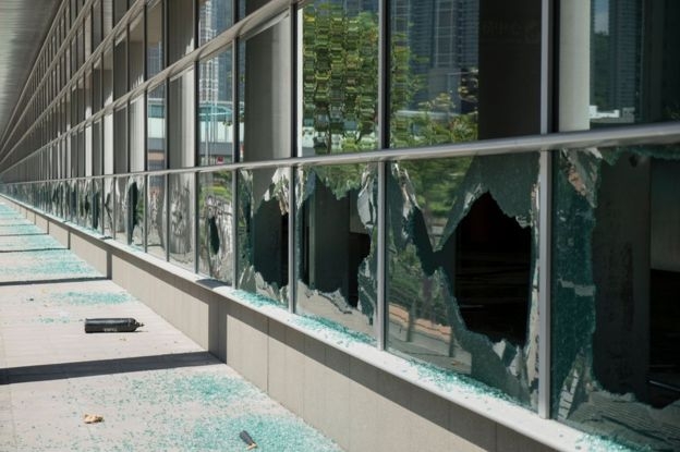 Most of Hong Kong's metro system remains shut after a day which saw stations and businesses attacked in violent anti-government protests.