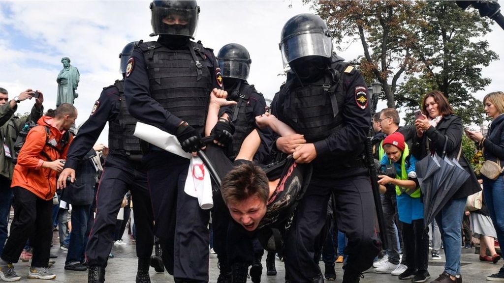 More than 600 people have been detained over an unauthorised protest in Moscow, amid reports of police violence.