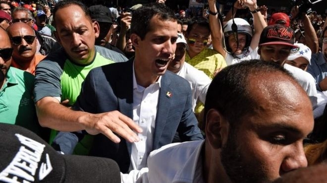 Venezuela's opposition leader Juan Guaidó has told tens of thousands of his supporters that humanitarian aid will be brought in, despite opposition from President Nicolás Maduro.