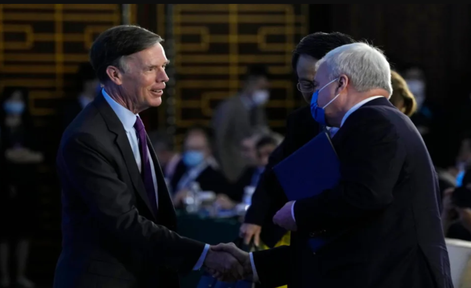 The US and Russian ambassadors clashed over Ukraine in a rare joint appearance in Beijing on Monday.
