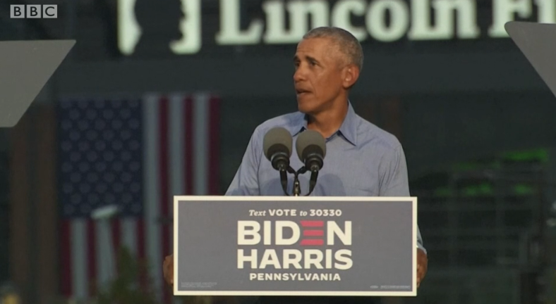 US President Donald Trump and his predecessor, Barack Obama, have directed blistering attacks at each other during rival rallies.