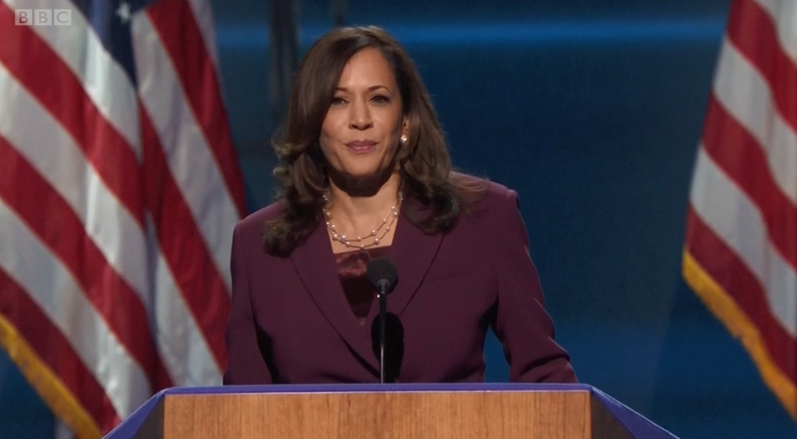 Kamala Harris has accepted her historic nomination as the US Democratic party's vice-presidential candidate, running with Joe Biden for the White House.