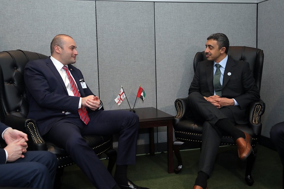 ეკონომიკური ურთიერთობების კიდევ უფრო გააქტიურებასა და მრავალმხრივ ფორმატებში თანამშრომლობის გაღრმავებაზე ისაუბრეს საქართველოს პრემიერ მინისტრმა და არაბთა გაერთიანებული საემიროების საგარეო საქმეთა და საერთაშორისო თანამშრომლობის მინისტრმა აბდულა ბინ ზაედ ალ ნაჰიანმა შეხვედრაზე, რომელიც დღეს გაეროს გენერალური ასამბლეის 73-ე სესიის ფარგლებში გაიმართა.