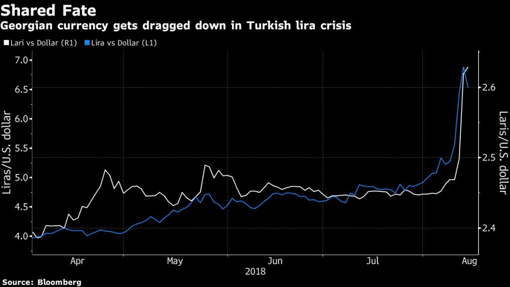 როდესაც საქართველო რუსეთთან ომის ათი წლისთავს აღნიშნავს, მისი ვალუტა სამხრეთელი მეზობლის დარტყმის ქვეშ აღმოჩნდა, წერს სააგენტო „ბლუმბერგი“.