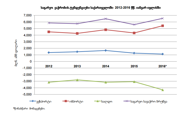 მიმდინარე წლის იანვარ-ივლისში, საქართველოში საქონლით საგარეო სავაჭრო ბრუნვამ (არაორგანიზებული ვაჭრობის გარეშე) 6 548 მლნ აშშ დოლარი შეადგინა.