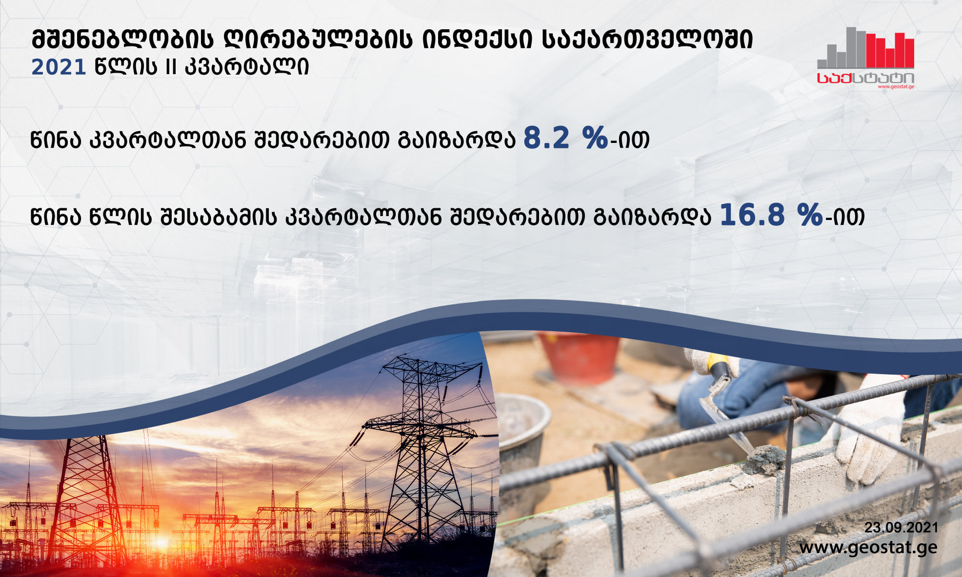 სტატისტიკის ეროვნული სამსახურის ინფორმაციით, მშენებლობის ღირებულების ინდექსი წინა კვარტალთან შედარებით 8.2 პროცენტით გაიზარდა.