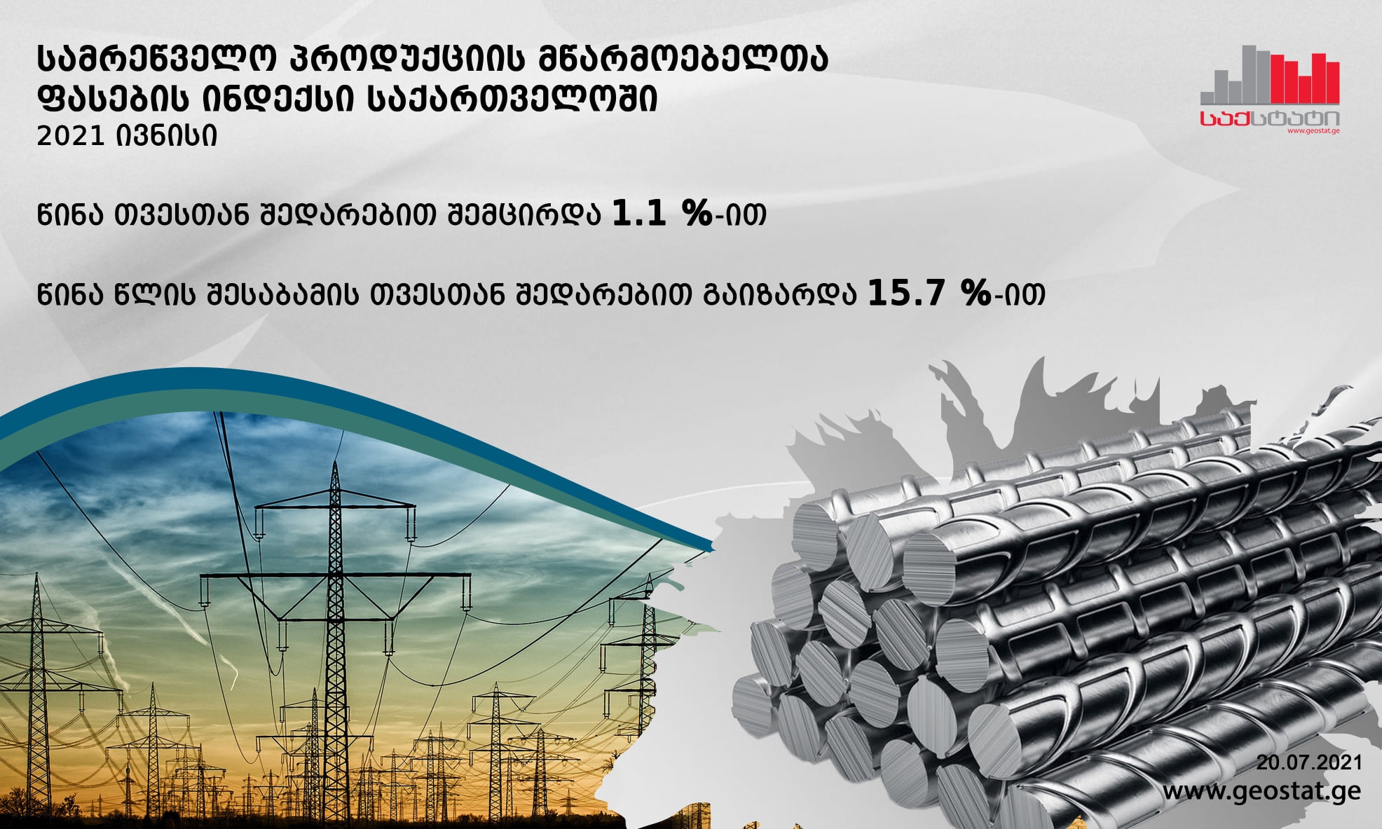 სტატისტიკის ეროვნული სამსახურის მონაცემებით, 2021 წლის ივნისში სამრეწველო პროდუქციის მწარმოებელთა ფასების ინდექსი წინა თვესთან შედარებით 1.1 პროცენტით შემცირდა, ხოლო წინა წლის შესაბამის თვესთან შედარებით 15.7 პროცენტით გაიზარდა.