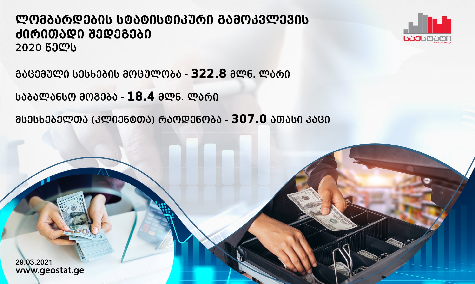 2020 წელს ლომბარდებმა 322.8 მლნ. ლარის სესხი გასცეს. გაცემული სესხების 87.5 პროცენტი ფიზიკურ, ხოლო დარჩენილი 12.5 პროცენტი – იურიდიულ პირებზე მოდის. ამის შესახებ ინფორმაციას სტატისტიკის ეროვნული სამსახური ავრცელებს.