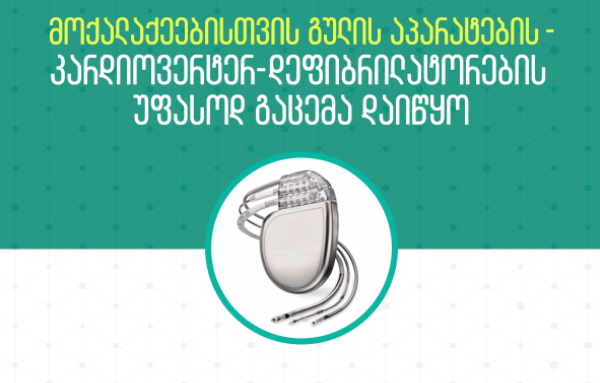 ჯანმრთელობის ეროვნულმა სააგენტომ შესაბამისი საჭიროების მქონე პაციენტებისთვის სასიცოცხლო მნიშვნელობის, ძვირადღირებული, დასავლური სტანდარტის გულის აპარატების - კარდიოვერტერ-დეფიბრილატორების უსასყიდლოდ გაცემა დაიწყო.