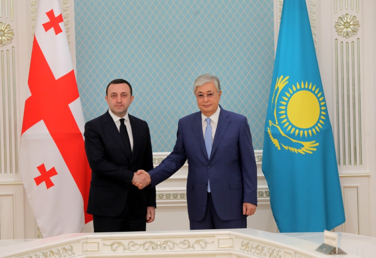 ყაზახეთის რესპუბლიკაში ვიზიტის ფარგლებში საქართველოს პრემიერ-მინისტრი ირაკლი ღარიბაშვილი ყაზახეთის რესპუბლიკის პრეზიდენტს კასიმ- ჟომარტ ტოკაევს შეხვდა. ყასიმ- ჟომართ ტოყაევმა ირაკლი ღარიბაშვილს დელეგაციასთან ერთად, "აკორდას" სასახლეში უმასპინძლა.