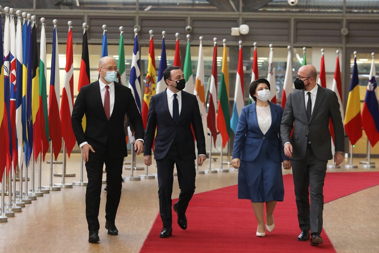 საქართველოს პრემიერ-მინისტრი, უკრაინელ და მოლდოველ კოლეგებთან ერთად, ბრიუსელში მაღალი დონის შეხვედრებს მართავს. ირაკლი ღარიბაშვილს, დენის შმიგალს და ნატალია გავრილიცას ევროპული საბჭოს პრეზიდენტმა შარლ მიშელმა სამუშაო სადილზე უმასპინძლა.