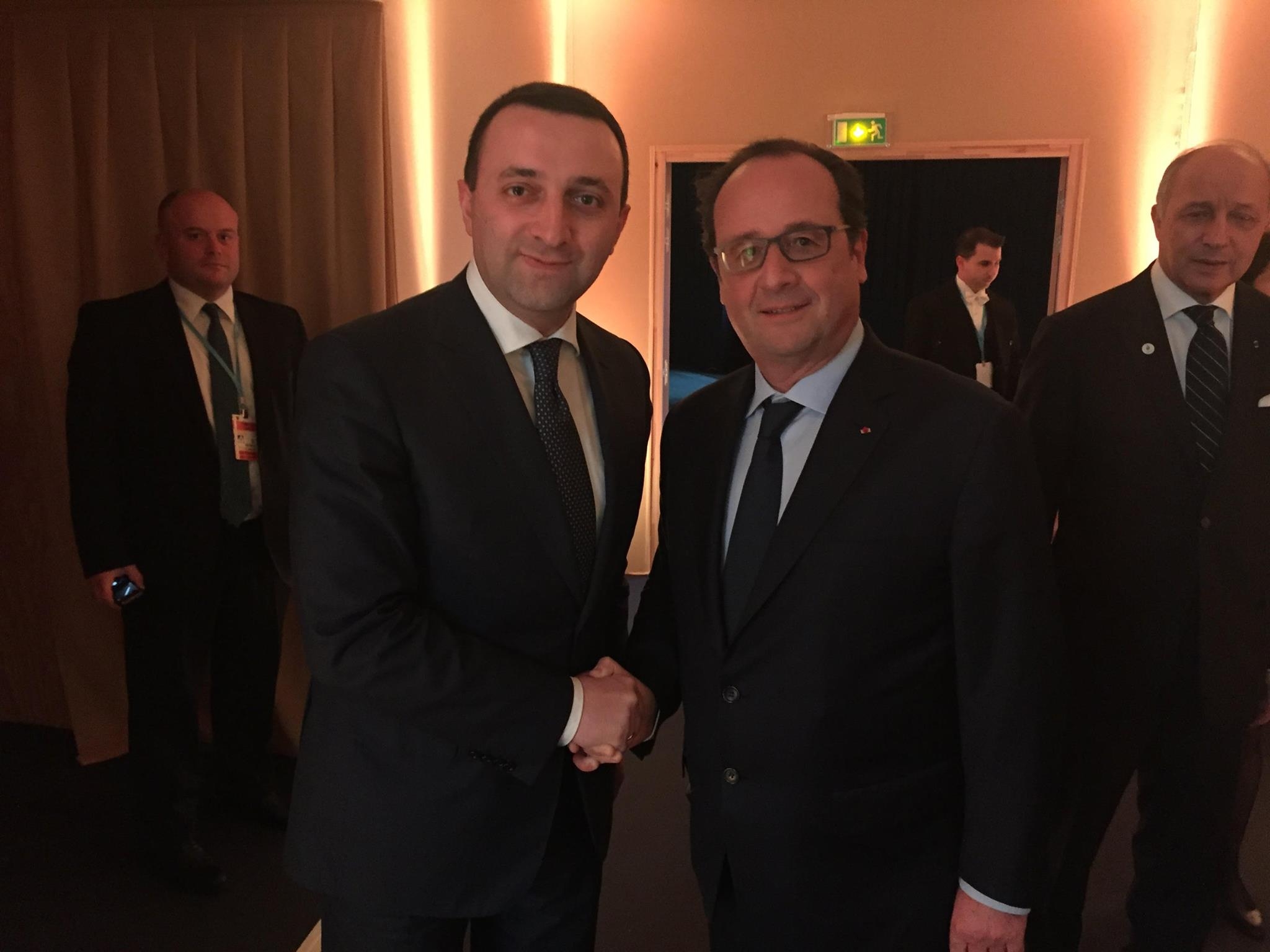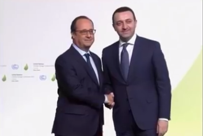 საფრანგეთის პრეზიდენტმა ფრანსუა ოლანდმა საქართველოს პრემიერ-მინისტრ ირაკლი ღარიბაშვილს გაერო-ს კლიმატის ცვლილებების ჩარჩო კონვენციის მხარეთა კონფერენციაში (COP21) მონაწილეობისთვის მადლობა გადაუხადა.