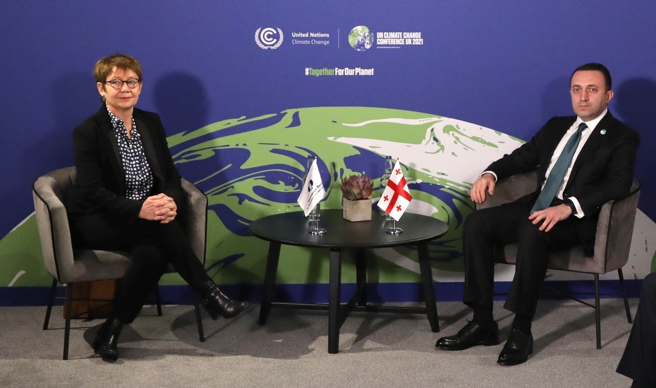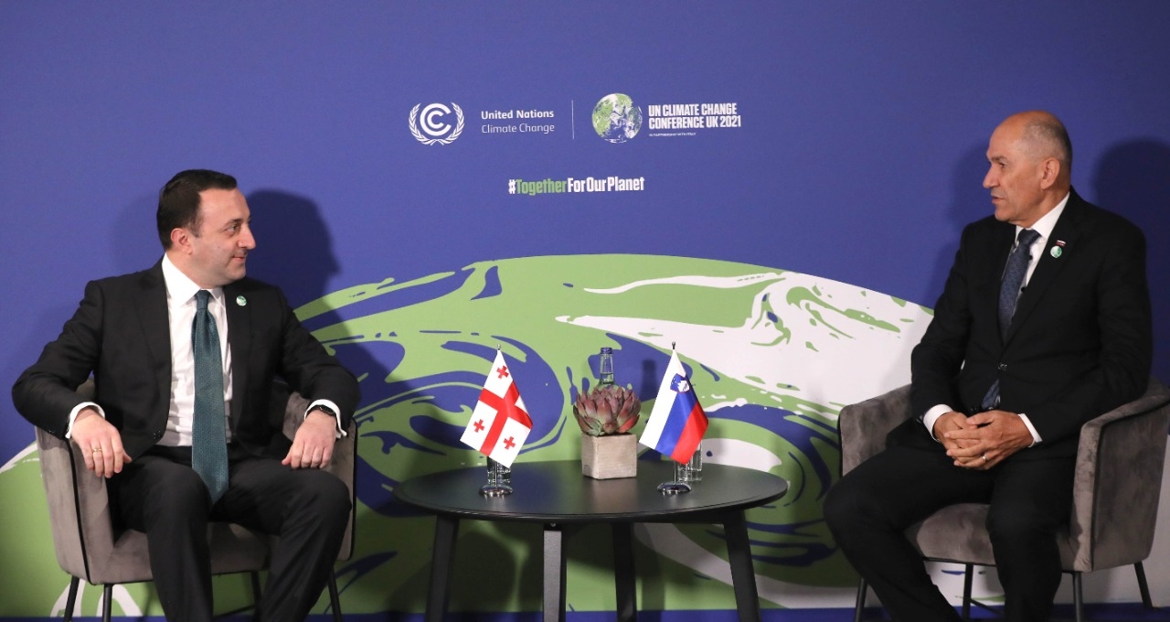 საქართველოს პრემიერ-მინისტრი ირაკლი ღარიბაშვილი, გაეროს 2021 წლის კლიმატის ცვლილებების 26-ე კონფერენციის ფარგლებში, სლოვენიის რესპუბლიკის პრემიერ-მინისტრს, იანეზ იანშას შეხვდა.