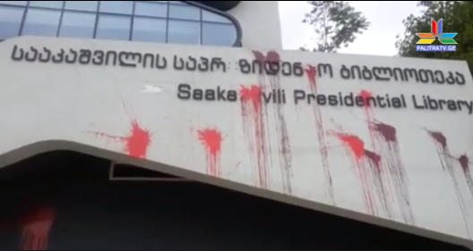 თბილისში, მიხეილ სააკაშვილის საპრეზიდენტო ბიბლიოთეკის შენობა წითელი საღებავებითაა შეღებელი. ბიბლიოთეკის შენობაზე გაკეთებულია წარწერა - "მწამებლის ბიბლიოთეკა" და მიხატულია წითელი ხელები.
