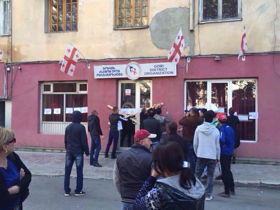გორში საპროტესტო აქციის მონაწილეებმა “ნაციონალური მოძრაობის“ ოფისს კარი აუჭედეს. ინციდენტისას ოფისში “ნაციონალური მოძრაობის“ რამდენიმე წარმომადგენელი იმყოფებოდა.