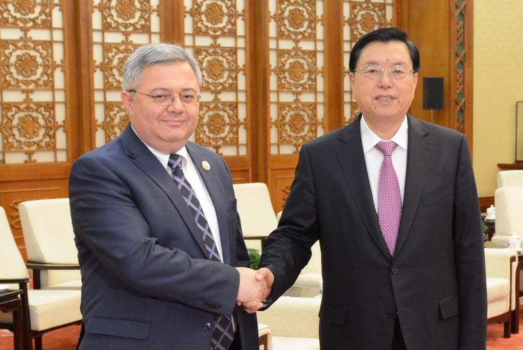 ჩინეთში სამუშაო ვიზიტად მყოფი პარლამენტის თავმჯდომარე დავით უსუფაშვილი ერთიანი ჩინეთის სახალხო წარმომადგენელთა ყრილობის მუდმივმოქმედი კომიტეტის (პარლამენტის) თავმჯდომარეს ჩჟან დეძიანგს შეხვდა.