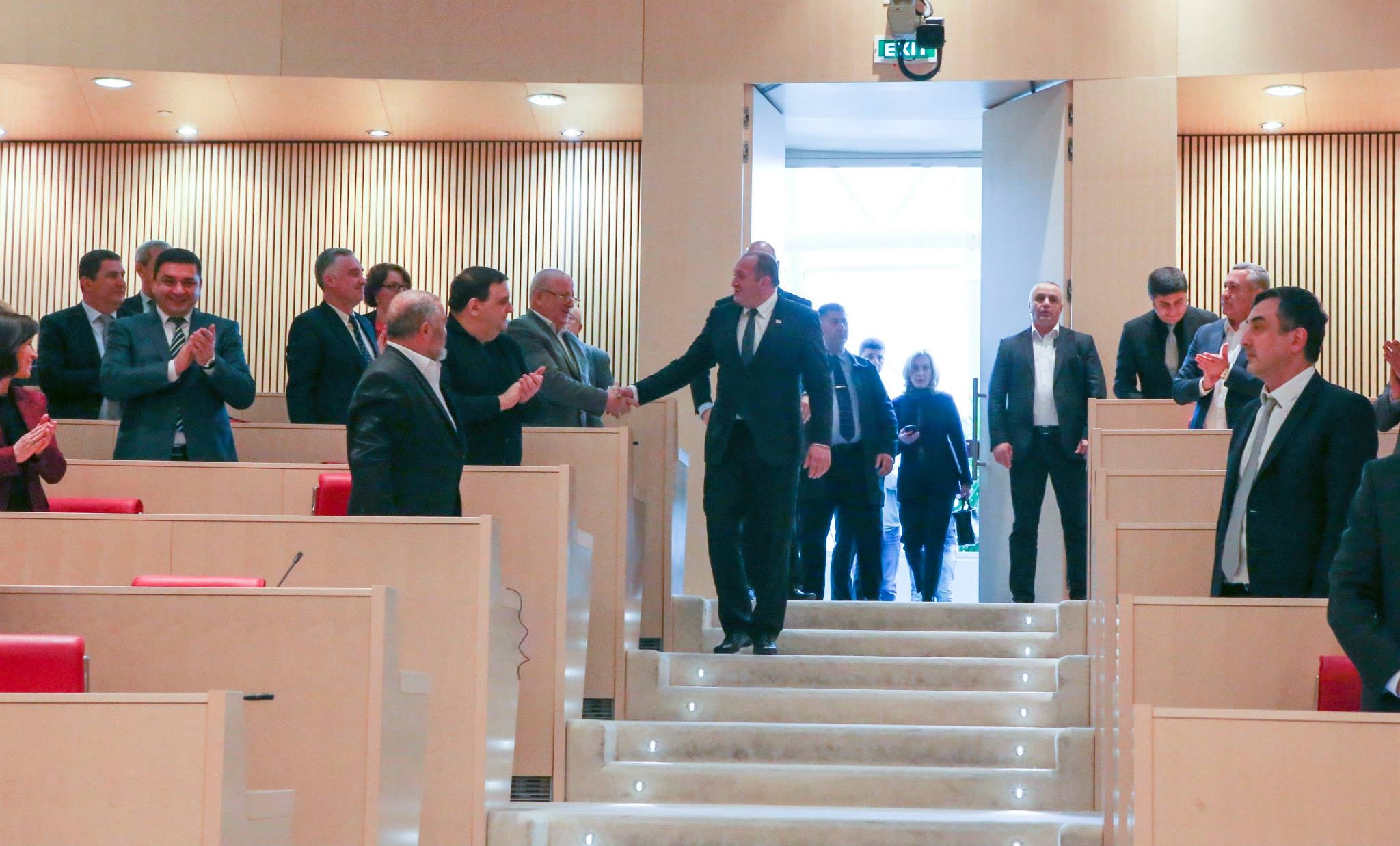უმრავლესობის წევრის ზაქარია ქუცნაშვილის განცხადებით, პრეზიდენტმა პროტოკოლი დაარღვია და მას სხდომათა დარბაზში შემოსვლისას ხელი არ ჩამოართვა. როგორც ქუცნაშვილმა ჟურნალისტებთან საუბრისას აღნიშნა, პროტოკოლის მიხედვით პრეზიდენტი ვალდებული იყო პირველივე შემხვედრი დეპუტატისთვის ხელი ჩამოერთვა.