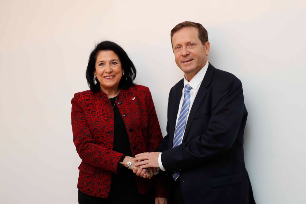 საქართველოს პრეზიდენტი სალომე ზურაბიშვილი ისააკ ჰერცოგს ისრაელის პრეზიდენტად არჩევას ულოცავს.