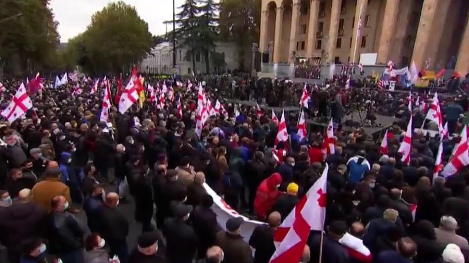 რუსთაველის გამზირზე ოპოზიციის საპროტესტო აქცია იწყება – სხვადასხვა პოლიტიკური პარტიების ლიდერები და წარმომადგენლები, პარლამენტის შენობასთან მხარდამჭერებთან ერთად იკრიბებიან.